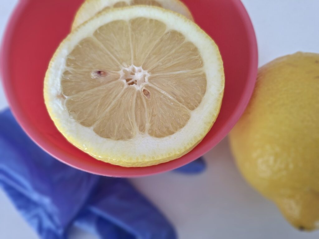 - Halkaise sitruuna ja purista sen mehut mikroaaltouunin kestävään kulhoon.
